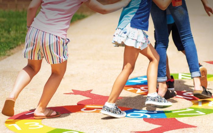 Who says safety education has to be boring? Schools can transform their playgrounds into interactive learning environments. By using road markings—such as preformed arrows or lines that become miniature city models—children can learn important traffic safety skills in a fun and memorable way. This playful approach promotes early traffic education. In addition, colorful playground markings promote cognitive development and team spirit during recess in the schoolyard.