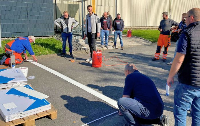 In the practical session that followed, participants melted, applied, and exchanged ideas. Under expert guidance, they learned what really matters when it comes to substrate preparation, temperature control, and the proper application of reflective glass beads. The direct exchange with application specialists was especially appreciated – participants gained valuable first-hand tips, from avoiding common mistakes to checking adhesion.