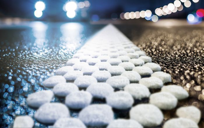 It is drizzling, and the road glistens wet in the street lamps' light. A pedestrian takes her first step onto the zebra crossing, while a few metres away, a cyclist carefully rolls over the red-marked bike lane. Suddenly, the tyre slips slightly but immediately regains its traction. This is no coincidence, but the result of an optimised surface texture: skid-proof road markings that provide a secure grip.