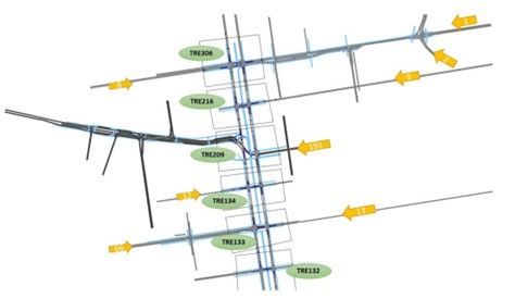 Figure 1 – Simulated intersections with feeding traffic from the side branches