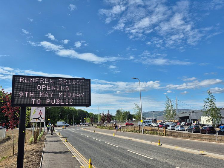 SWARCO UK & Ireland has installed a series of24 RGB VMS on the approach to Renfrew Bridge at strategic locations either side of the River Clyde across Renfrewshire, Glasgow and West Dunbartonshire, all within an 2.2-mile radius. The intelligent, full colour VMS can be utilised for multiple functions and to display multiple messages, which Renfrewshire Council can remotely manage and update in real time via a dedicated PGS system that has been installed within the bridge’s control room. The signs also feature SWARCO’s patented lens technology which ensures the lowest power consumption which in turn provides a lower lifetime cost of ownership.