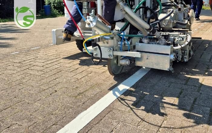 SWARCO employees also established contact with the marking company straat1. They were just as enthusiastic about the project and sent an employee with an application machine to help out. Together with the SWARCO team, the course was finally applied in August 2024 in extreme heat. Heat – of a completely different kind – was also necessary for the material used: Thermoplastic Systems and SWARCO PREFORMED.