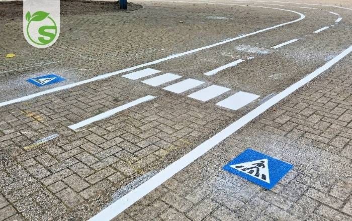 SWARCO PREFORMED is suitable for a wide range of applications on roads, schoolyards, playgrounds, car parks, bike lanes, cycle paths and company premises. These prefabricated lane markings are ideal for creating traffic signs, creative playgrounds or completely individual designs.