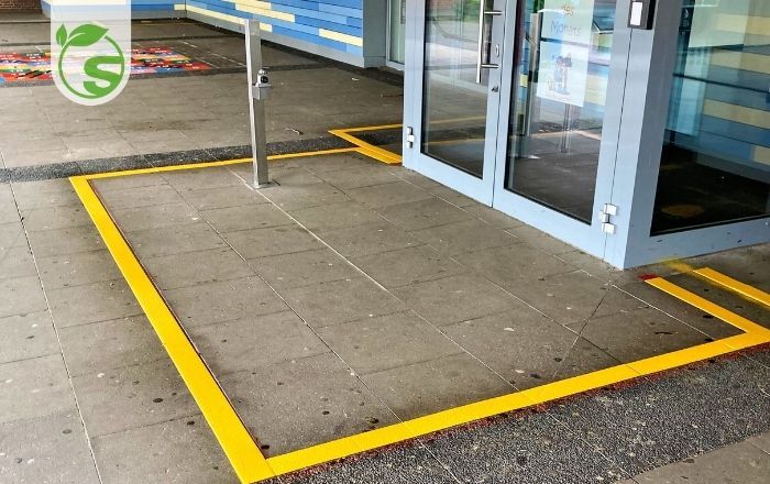When using preformed thermoplastic, a plain surface is essential to ensure good adhesion. The uneven paving in the school playground therefore presented a particular challenge. Thanks to their expertise and high-quality materials, the volunteers were able to tackle this issue with ease.