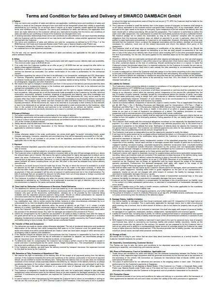Downloads Terms of Delivery & Sales