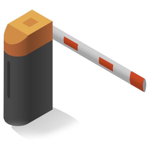 Klassische Zufahrtskontrolle mit Schranken, elektromechanische Schranken, selbstprogrammierende Schranken etc.