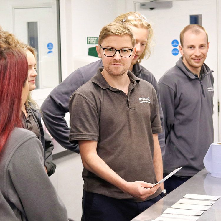“Mijn huidige functie is voornamelijk kantoorgebonden, hoewel ik nog steeds af en toe ondersteuning bied in het laboratorium.” Daniels dagelijkse routine is een mix van structuur en flexibiliteit. De ochtend begint met e-mails en het stellen van prioriteiten, gevolgd door teamoverleggen en projectupdates. Het werk omvat vragen van klanten, langetermijndoelstellingen op het gebied van duurzaamheid en strategische planning. Een van de meest motiverende aspecten van zijn functie? De mensen. Daniel legt uit: “Hoewel de dagelijkse taken behoorlijk hectisch en druk kunnen zijn, is het erg lonend om samen met het team dingen voor elkaar te krijgen.”