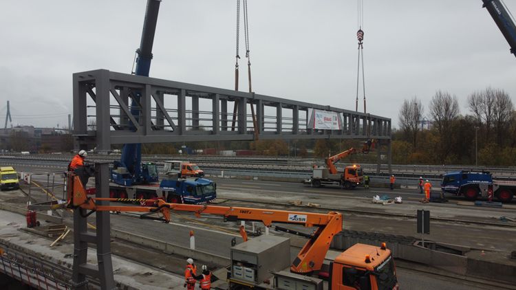 There are projects that go far beyond what everyday infrastructure construction typically involves. Projects that demand technical creativity, the courage to develop special solutions, and that truly put a team’s experience to the test. SWARCO Traffic Systems GmbH from Haiger delivered exactly such a project on the A7 near the Port of Hamburg: the installation of 20 overhead sign gantries—so-called traffic sign bridges—along one of Germany’s busiest motorway sections, including the longest structure ever installed across a motorway bridge anywhere in the country.