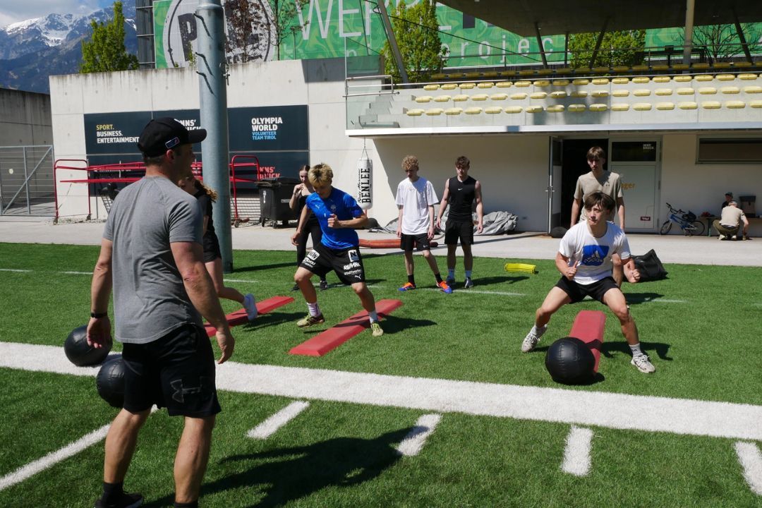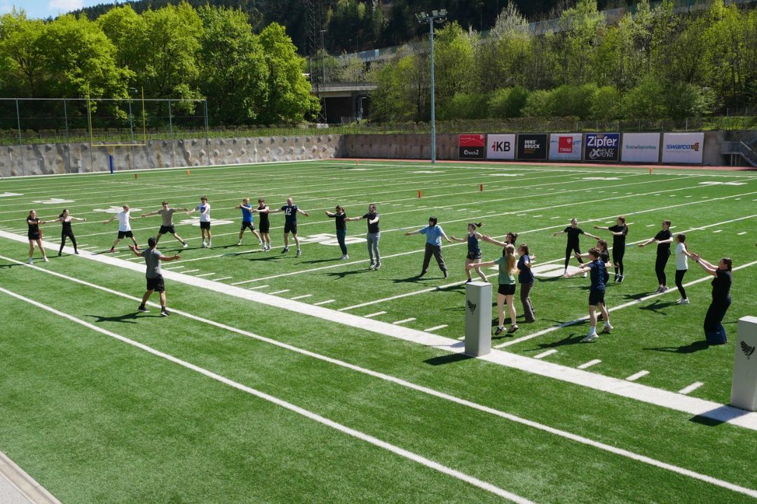 After a light lunch and a short guided tour of the TRAFFIC WORLD, students and teachers were ready to take on a trial American football training session with SWARCO Raiders legend Florian Grein. In summery temperatures, everyone worked up quite a sweat at the American Football Center in Innsbruck before heading home.
