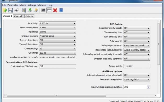 Med serviceprogrammet "LoopMaster" kan du använda alla nuvarande SWARCO TRAFFIC SYSTEMS detektorer i WEISS-Electronic varumärkesportföljen. Anslutningen till detektorn via seriell gränssnitt eller USB-adapter är autonomt detekterad. Dessutom visas nya detektorer eller nyligen tillagda gränssnitt automatiskt under drift.