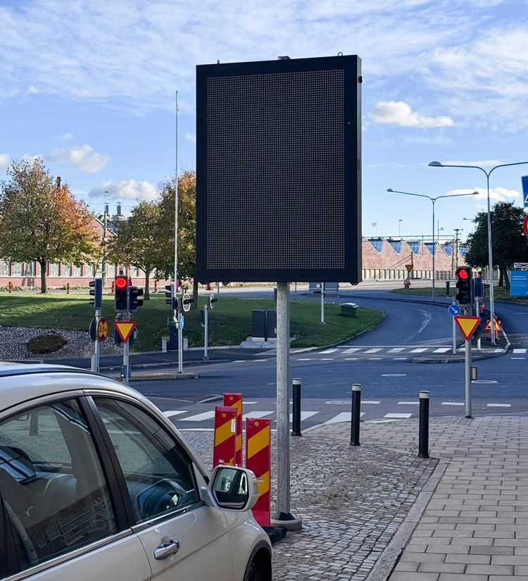 - Variabla meddelandeskyltar (VMS) med digital information om eventuell trafikomledning eller varningar. Skyltarna kan anpassas och kompletteras med nya budskap beroende på den rådande situationen.